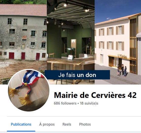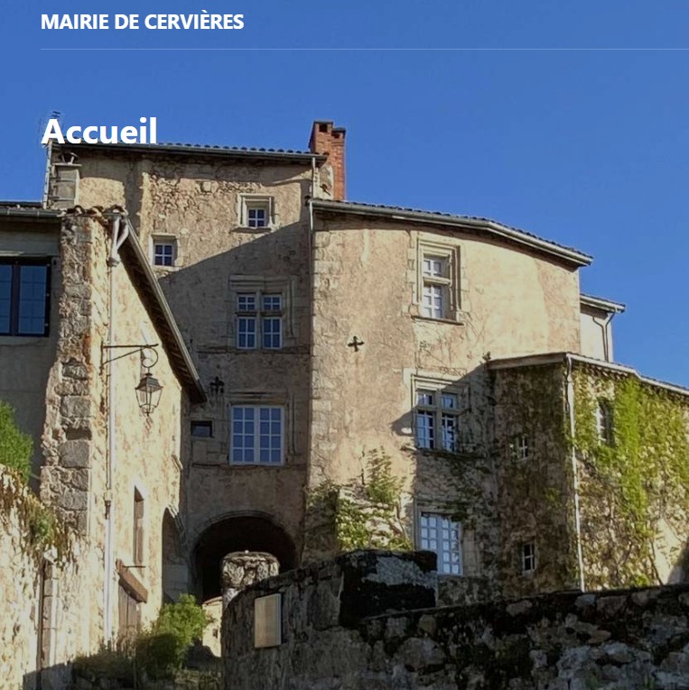 Cervières aujourd’hui Dans cette page… Se loger et se restaurerLes gîtesLes hôtelsLes restaurantsRéseaux sociauxMairie de CervièresFacebook de la MairiePresse et évènementsLa MontagneLe ProgrèsFestival des arts et d'histoirePartenairesLe départementAssociation des GrenadièresComité des fêtes Se loger et se restaurer Les gîtesPlusieurs gîtes sont disponibles à proximité de Cervières Les hôtelsPlusieurs possibilités d’hébergements existent près de Cervières Les restaurantsIl n’y a pas de restaurants à Cervières même mais plusieurs possibilités existent dans un rayon d’une dizaine de kilomètres. Réseaux sociaux Mairie de CervièresSite Web de la Mairie de Cervières Facebook de la MairieObtenez les dernières actualités du village Presse et évènements La MontagneLes actualités de Cervières dans le journal La Montagne Le ProgrèsLes actualités de Cervières dans le journal Le Progrès Festival des arts et d’histoireLe dernier festival des arts et d’histoire de Cervières Partenaires Le départementSite du département de la Loire Association des GrenadièresSite de l’association des Grenadières Comité des fêtesAgenda des manifestations